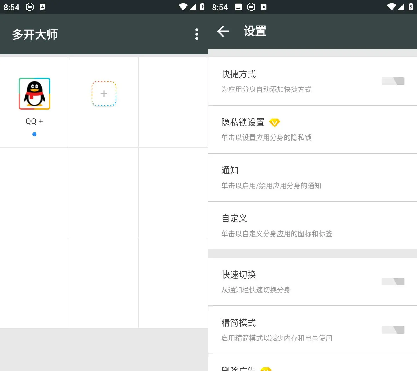 双开、分身、多开的应用,一键添加桌面快捷方式,任意改变微信、QQ派派等应用名称、图标,一切随心定制。