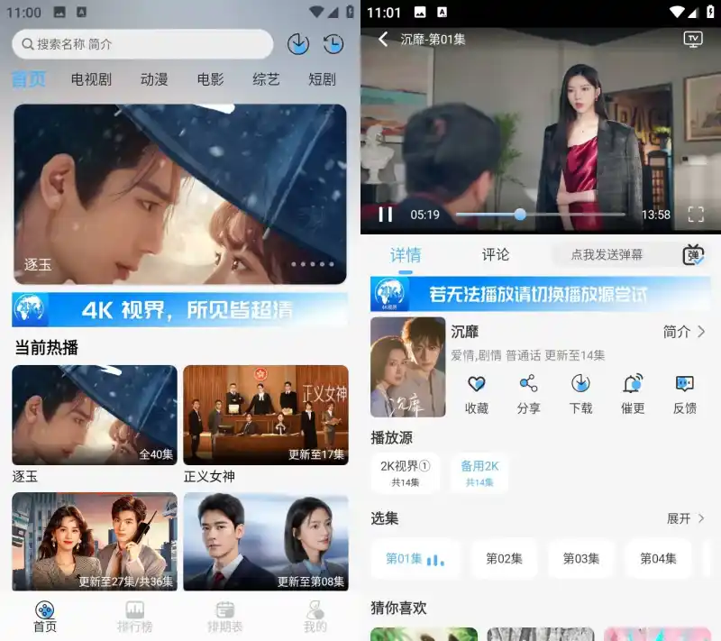 4K视界是个主打高清影视资源的平台类软件。它主要就是为影视爱好者提供超多4K超高清画质的影视内容,电影、电视剧、纪录片啥都有。打开软件,你能看到界面简洁明了,查找资源方便,通过搜索或者分类导航,就能快速找到心仪影片。这里的资源不仅画质顶尖,而且更新速度也不慢,新片热剧常常能及时上线。对画质有高要求,喜欢享受极致观影体验的朋友,4K视界就很合适。感兴趣的话就来下载试试看吧!