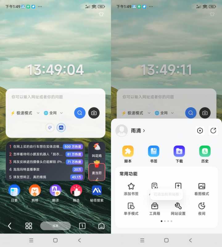 雨见浏览器,去除了雨见浏览器的浏览器内核,使用安卓系统的Webview来替代,从而带来了更加轻快流畅的体验。但是不支持浏览器拓展(支持油猴脚本),这适合追求速度的用户使用。