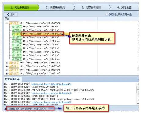第一步:双击采集规则,打开任务窗口,点第三步,配置内容发布模块: