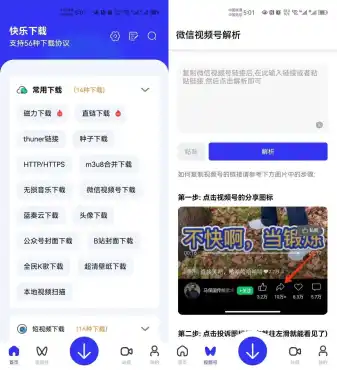 支持下载磁力、短视频、视频号、无损音乐、视频处理等强大功能,非常的好用。并且视频号无视wx版本,可以直接链接下载保存视频。